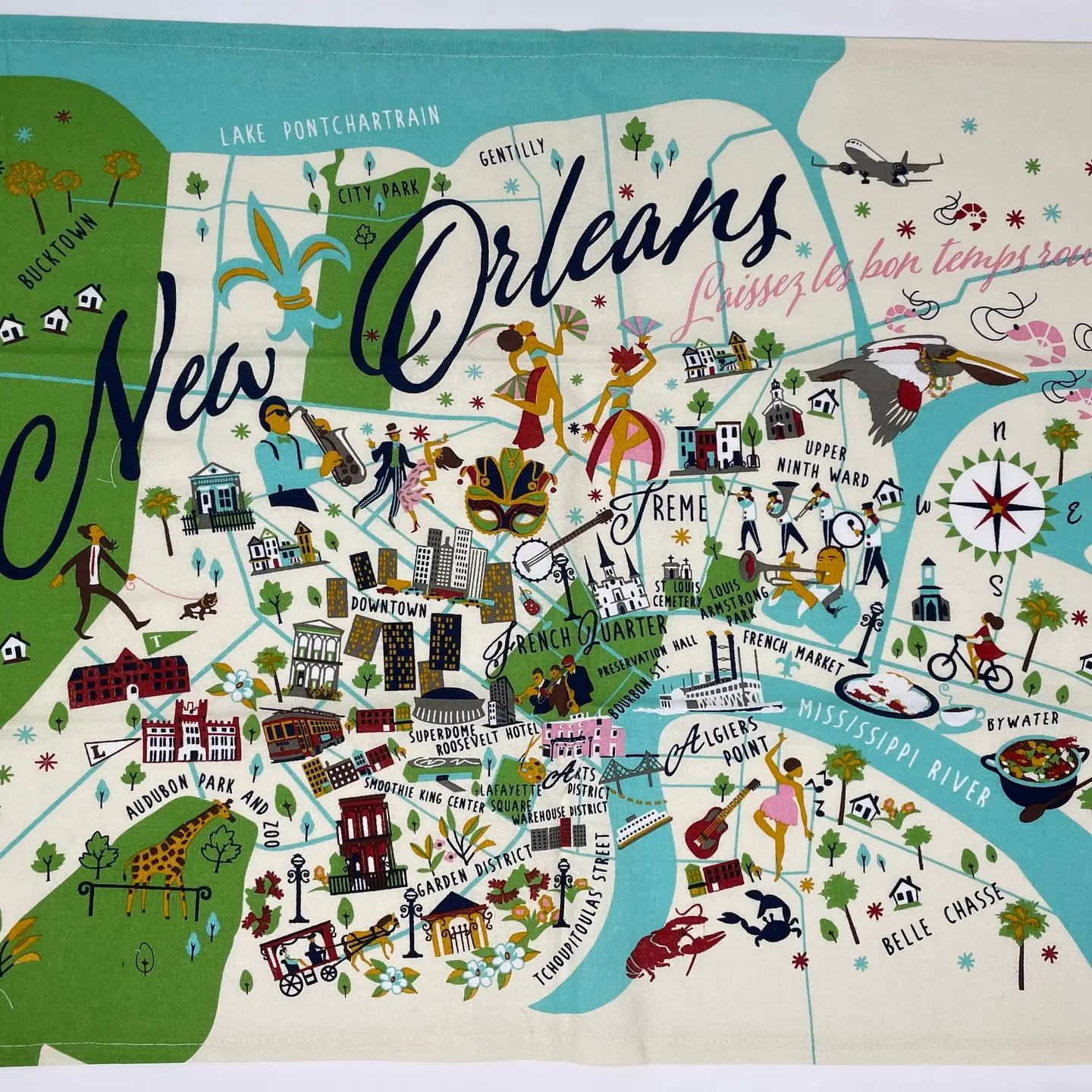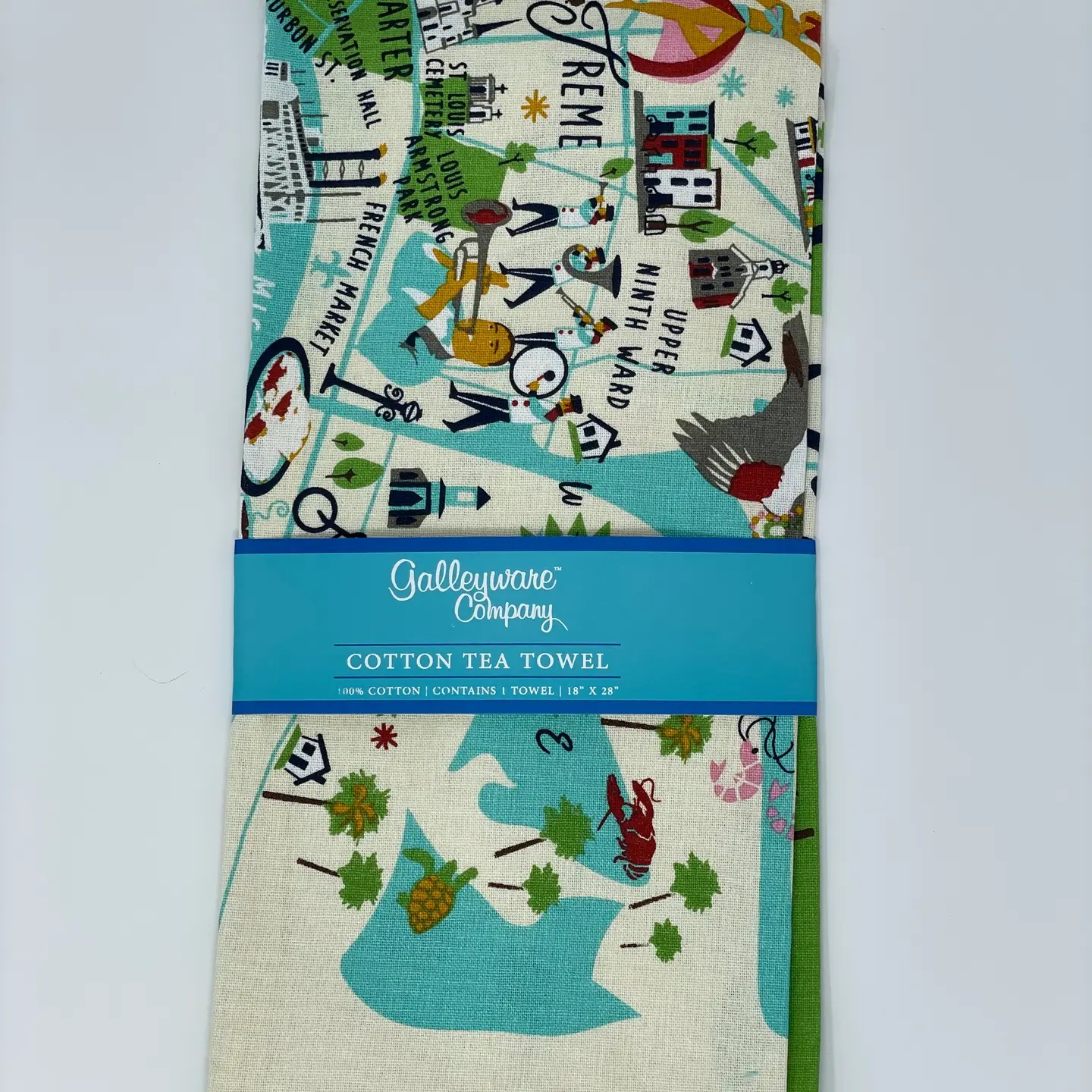 Whimsical depiction of New Orleans on a 18″ x 28″ cotton Tea Towel. Original Galleyware artwork shows the major towns and attractions. Material: 100% Cotton. Lint-free. Hangs easily with attached loop. Care: Machine wash cold. Tumble dry low or line dry for best results. Safe to iron. Do not use bleach. Do not use fabric softeners which leave an oily, water-resistant layer on the towel, making it harder to absorb moisture.